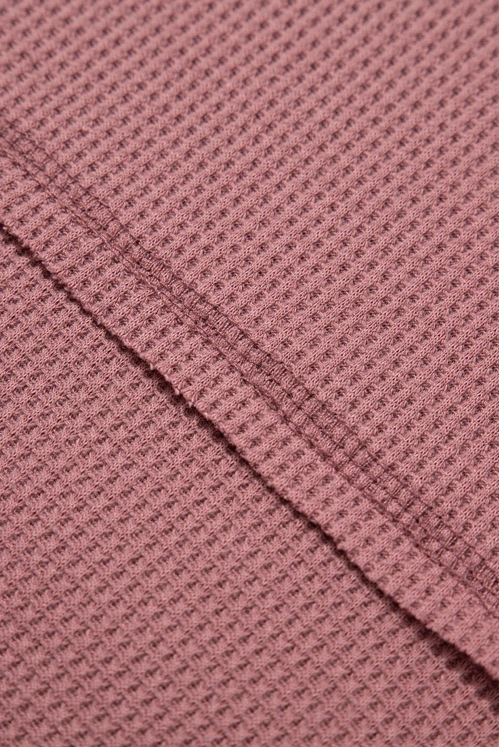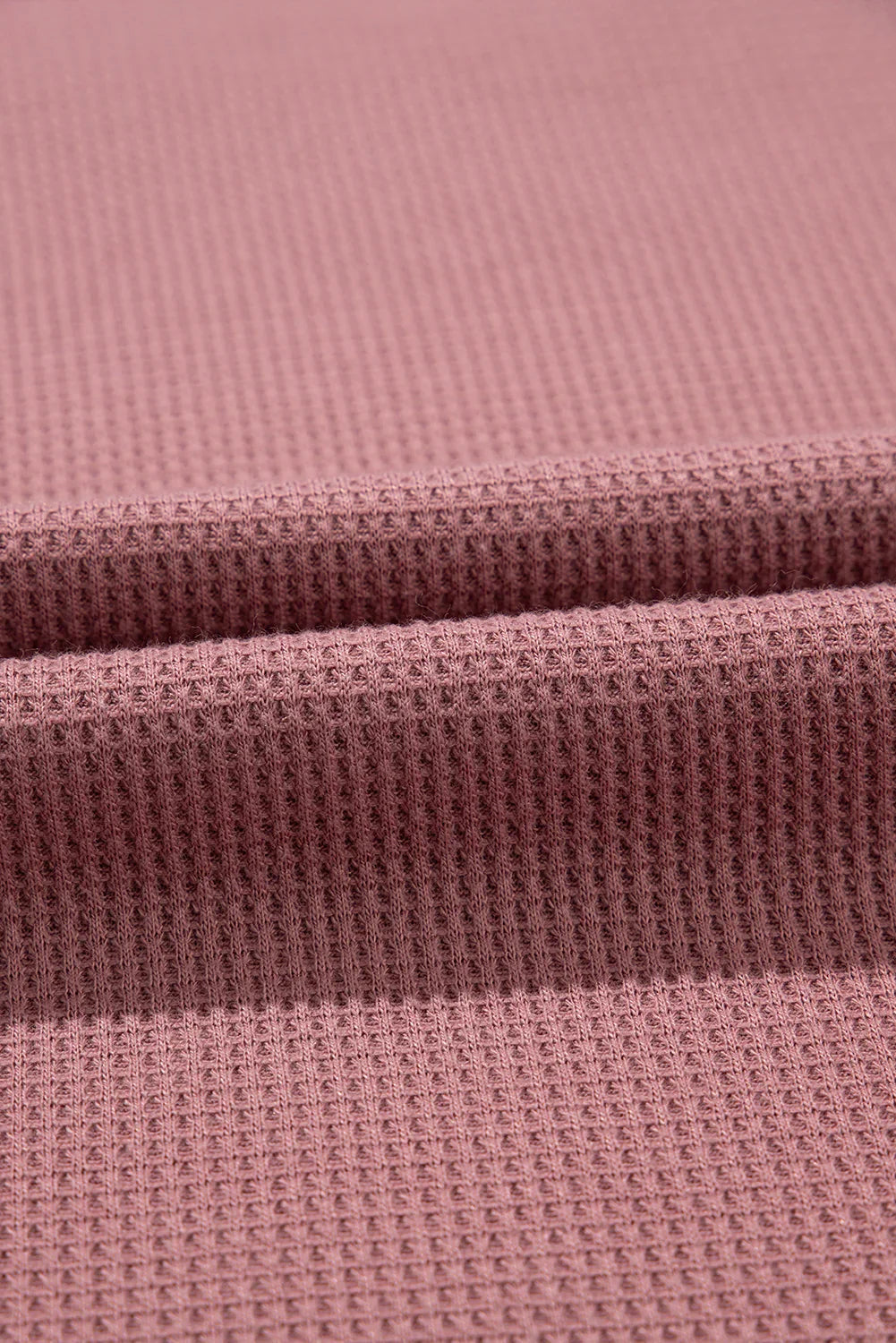 Blue Exposed Seam Drop Sleeve V Neck Waffle Textured Top