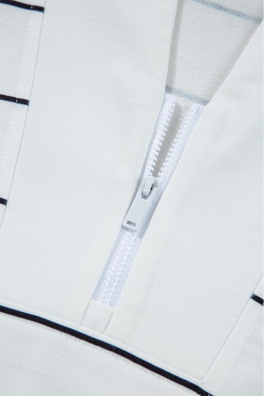 Classic Striped Zipper V-Neck Drop Sleeve Top