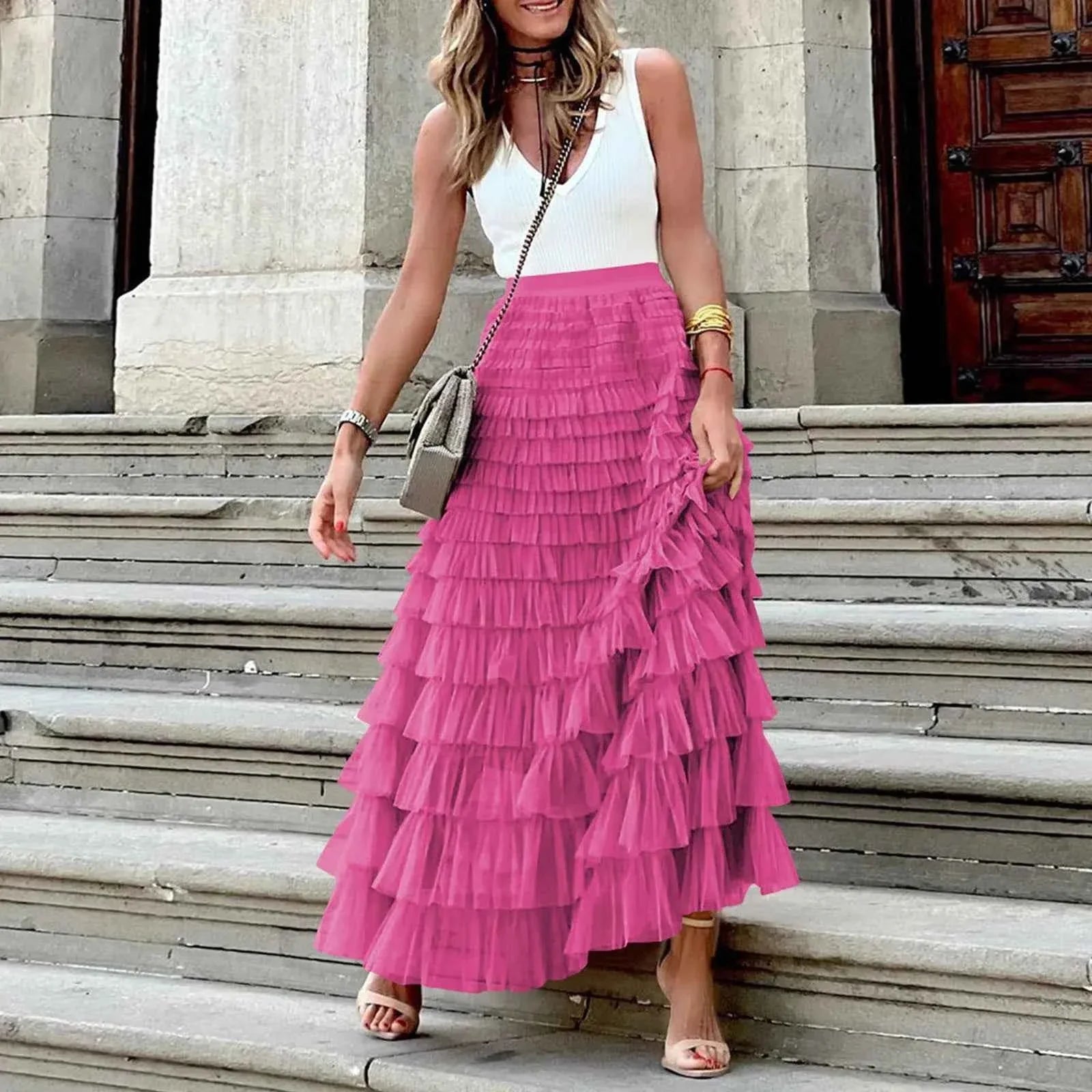 The Summer Maxi Skirt is an essential piece for any woman's wardrobe, blending elegance and comfort into one versatile style. Perfect for the warm months, this skirt features a stunning layered ruffles design that adds dimension and flair. Whether you're heading to the office, enjoying a casual day out, or dressing up for an evening event, the Summer Maxi Skirt is designed to enhance your silhouette and elevate your outfit.