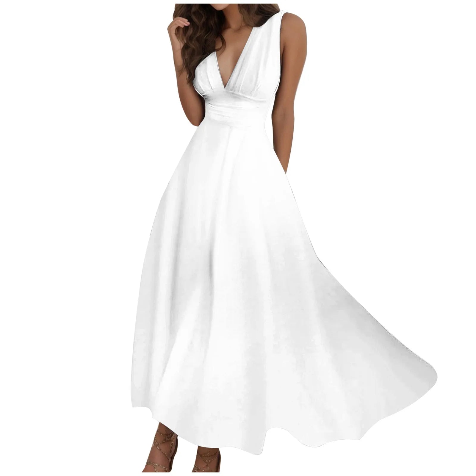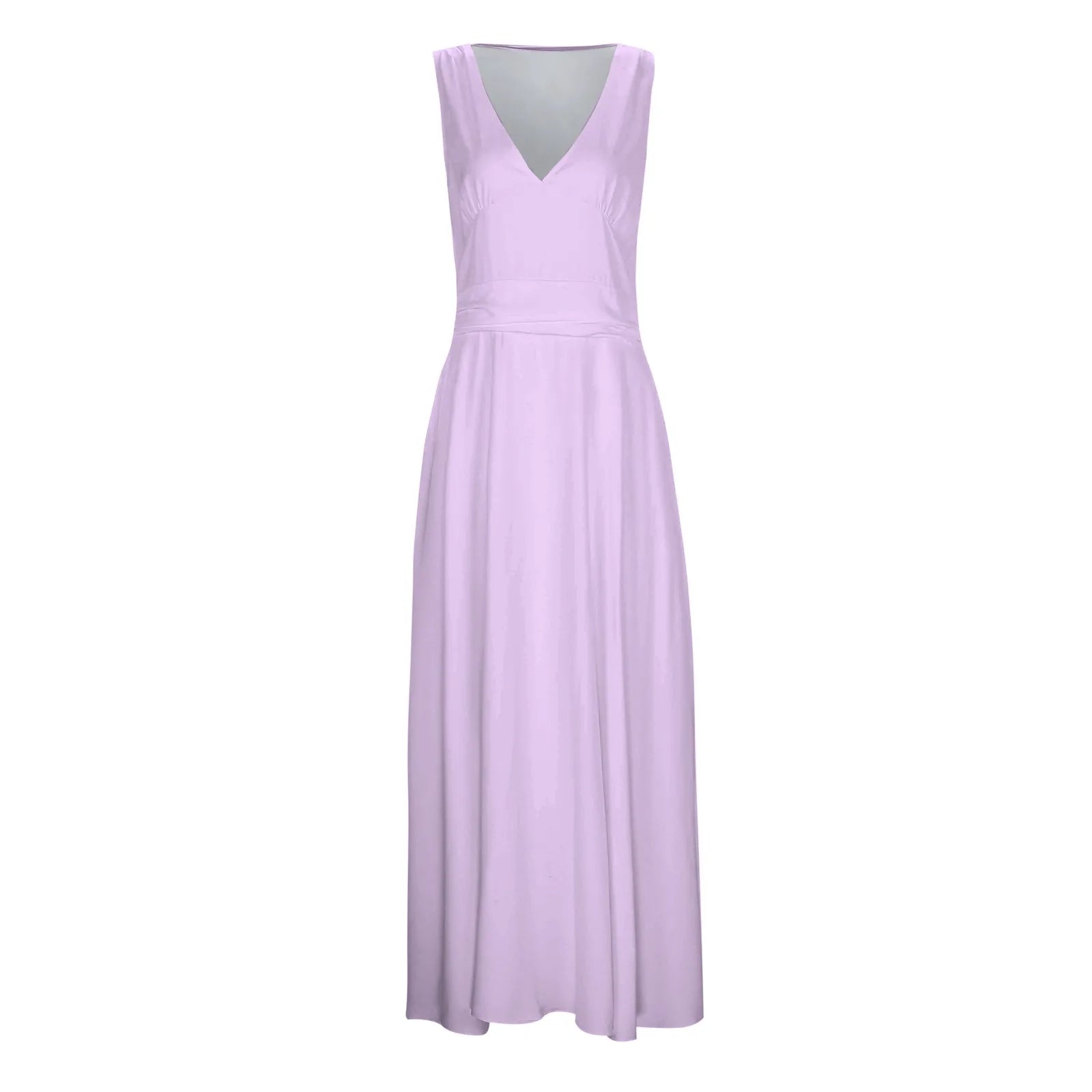 Sleeveless V Neck Side Zipper Long Dress Elegant Sundress